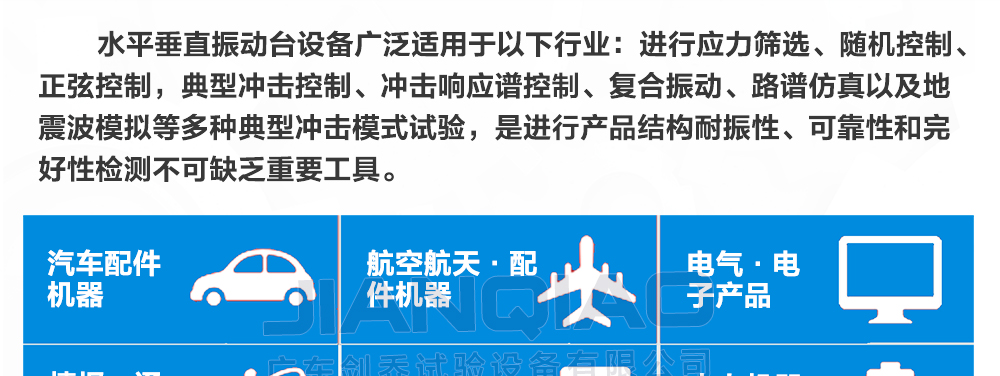 您好!歡迎光臨廣東劍喬試驗設備有限公司官網(wǎng)!主營:振動臺,振動試驗臺,電動振動臺,高頻振動臺,沖擊試驗臺