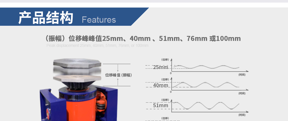 * 位移可選76mm或100mm.uDisplacement peak-to-peak value of  76mm or 100mm.